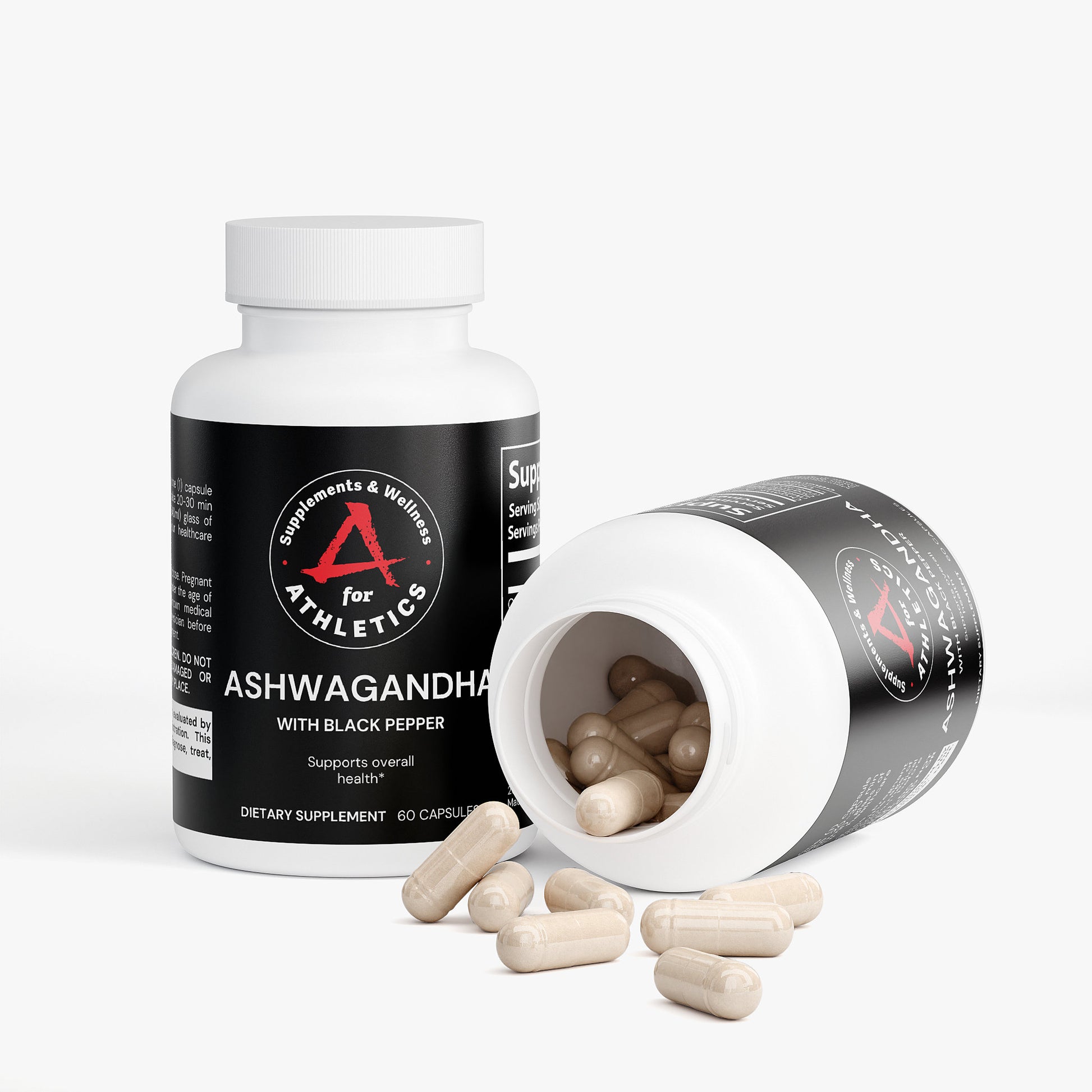 Organic Ashwagandha Root (Withania somnifera), Organic Black Pepper Fruit (Piper nigrum), Pullulan (vegetable capsule)
